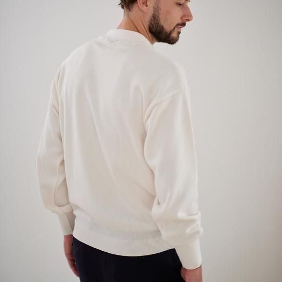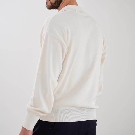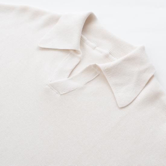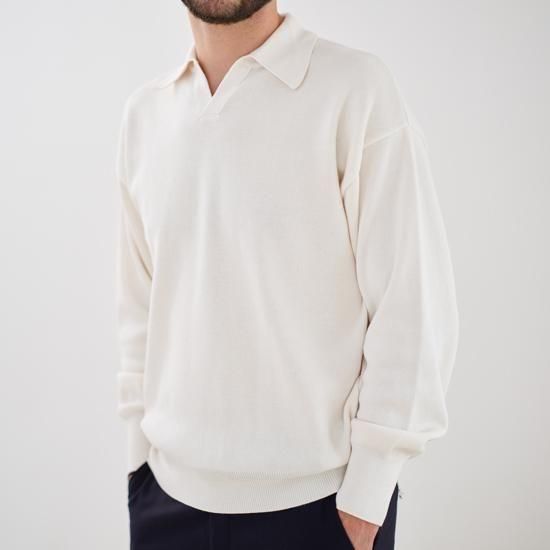 適度に開いたスキッパーネックと立体的な襟が顔まわりをすっきり見せ、一枚でも、あるいはシャツと重ねても品よく決まり、オールシーズン対応の汎用性の高い1枚です。ウォッシャブル仕様、UNSEX。
